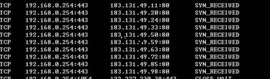 二、排查过程及解决方法 1、 Web后台由https访问改成http访问,页面能正常打开。 2、 在Pubwin服务端机器上通过 netstat –an查看,发现网吧的多个443端口连接状态为 SYN_RECEIVED(DDOS的典型现象)。
