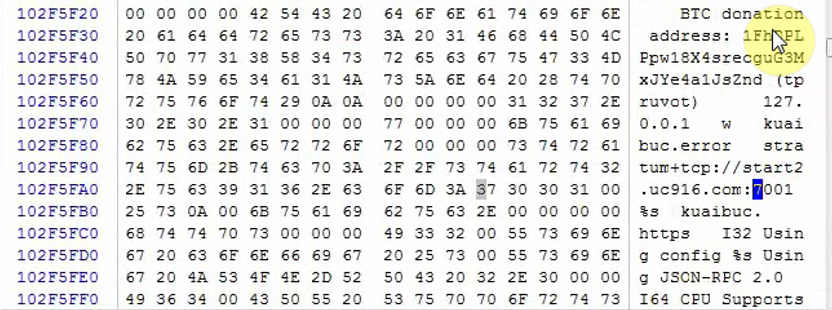 5、关掉任务管理器以及调试工具后dllhost重新开始工作,使用第三方工具核对程序内存,发现程序所连接的7001端口真实域名为start2.uc916.com:7001