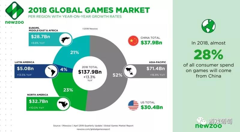 Newzoo预计,全球游戏玩家总人数大约为23亿。