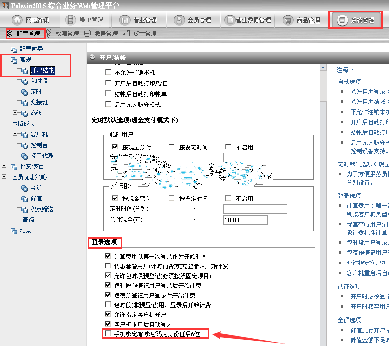 打开Web后台-系统管理-配置管理-常规-开户结账-登陆选项-勾选“手机绑定/解绑密码为身份证后6位”即可,如图: