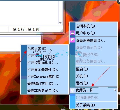 2.通过客户端右下角的小电脑图标,管理员工具-系统设置 如图