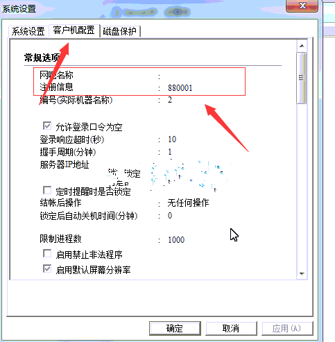 通过客户端的右下角的小电脑图标-管理员工具-系统设置客户机配置注册信息如下图:
