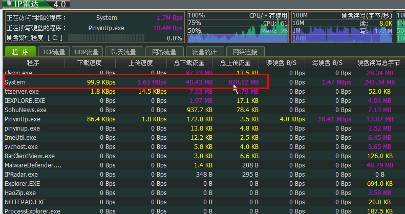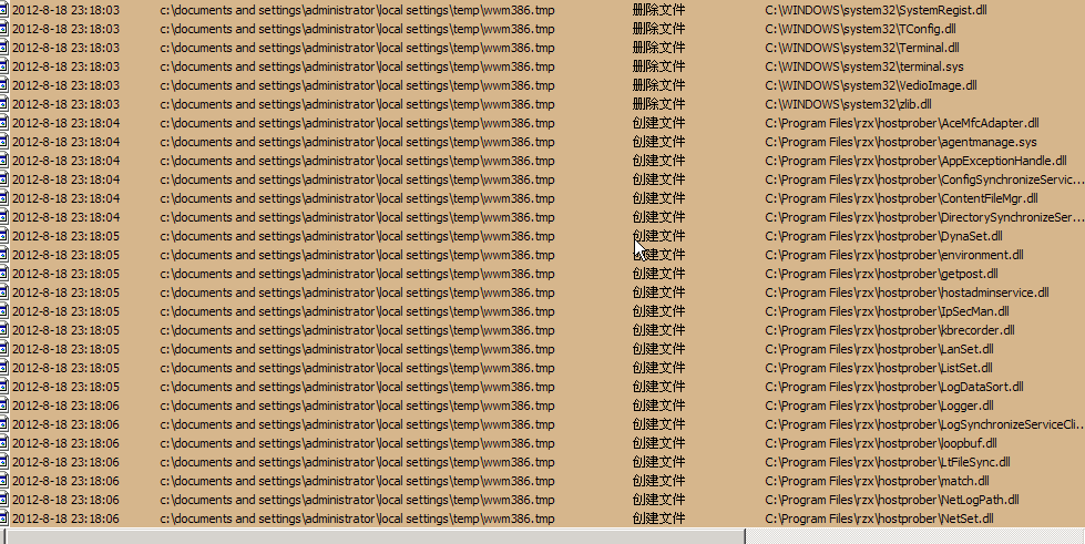 重启一台机器马上安装好监控工具,发现此进程是由一个名为wxrzx2cltplg.wxe的程序创建的,经验丰富的人了解,这正是任子行的进程,而任子行是由万象调用起来的。为证明自己想法,将收费服务器网线拔掉后观察,发现回写数据戛然而止,如下几幅图片: